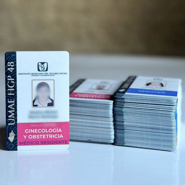 Para el Instituto Mexicano del Seguro Social, desarrollamos la identidad visual y la producción de identificaciones institucionales en credencial de PVC para los médicos residentes de la UMAE 48 en León, Guanajuato.
