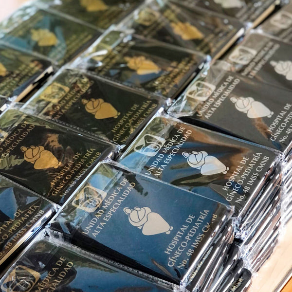 Las credenciales fueron concebidas como piezas modernas y sobrias, con un estándar visual comparable al de hospitales privados de alto nivel. Por su parte, los termos y libretas funcionaron como promocionales útiles y duraderos, pensados para acompañar a los asistentes más allá del evento, manteniendo vigente la presencia institucional del IMSS.
